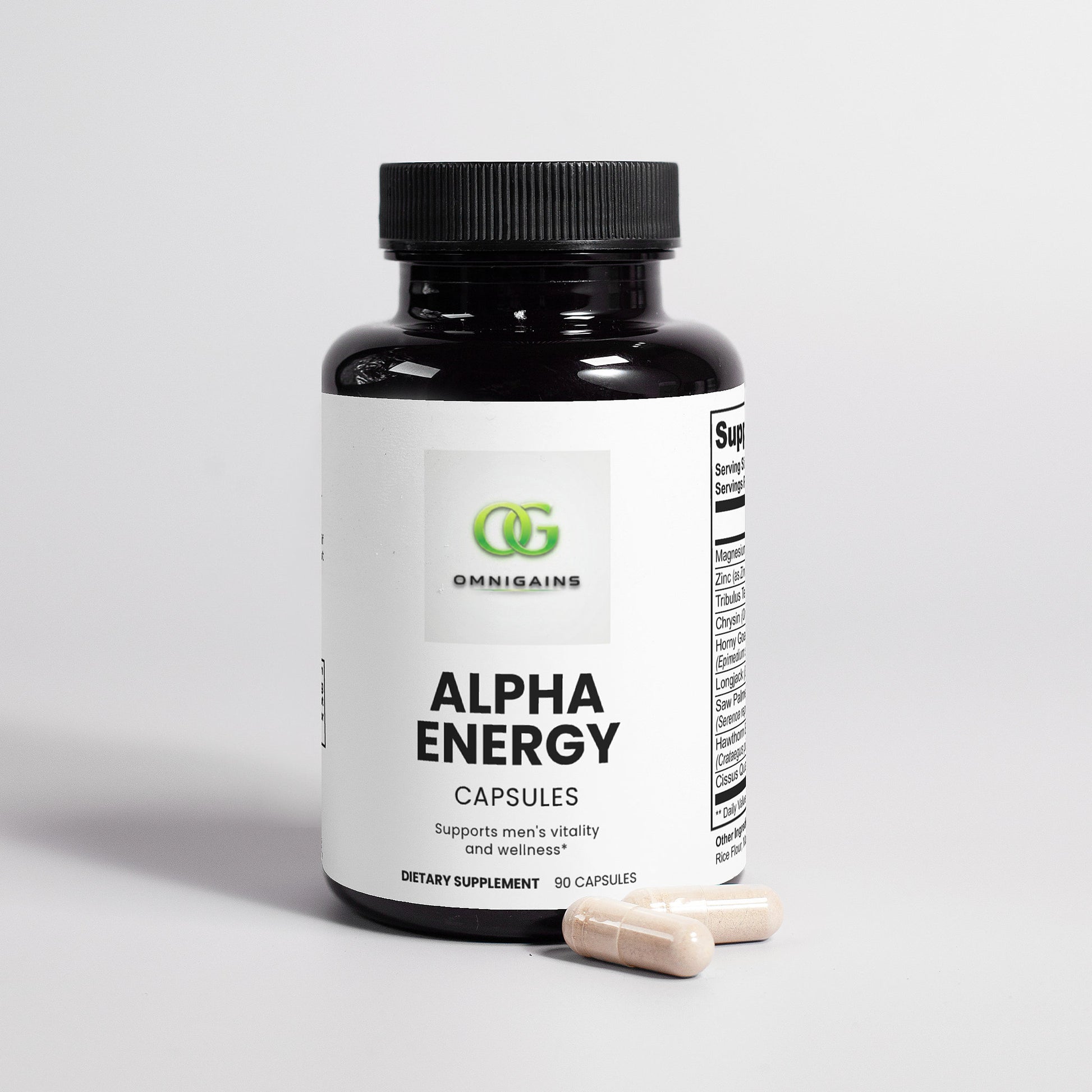 With additional support from Saw Palmetto, Hawthorn, and Cissus Quadrangularis, Alpha Energy Capsules provide comprehensive wellness support for active men. This formula helps promote circulation, muscular recovery, and overall vigor — so you can feel like your best self, inside and out.*