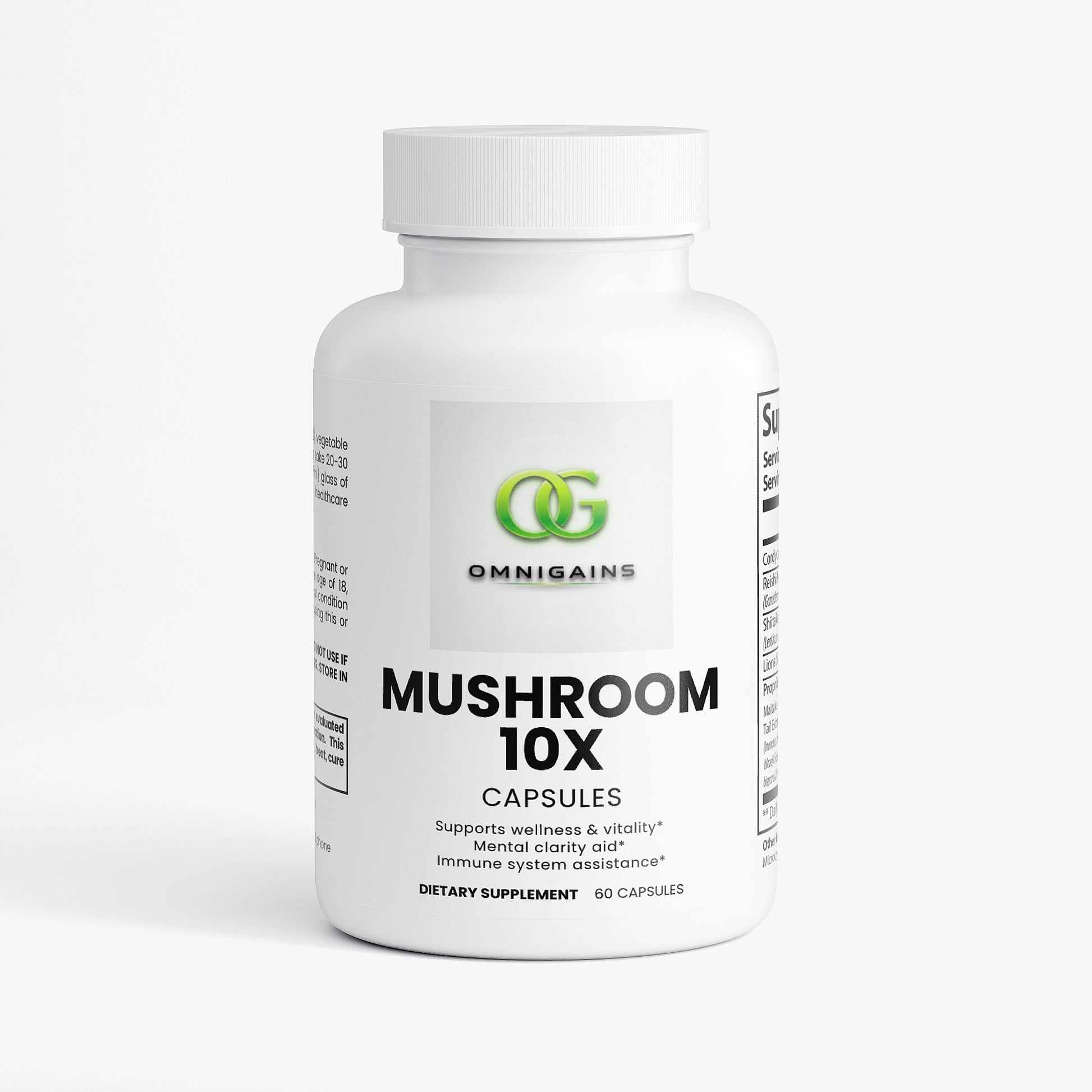 Ingredients:Â Cordyceps Sinensis Powder, Reishi Mushroom Extract, Shiitake Mushroom Extract, Lions Mane, Proprietary Blend (Maitake Mushroom Extract, Turkey Tail Extract, Chaga Mushroom Extract, Royal Sun Agaricus Extract, White Button Mushroom Extract, Black Fungus Extract, Hypromellose (vegetable capsule), Microcrystalline Cellulose, Magnesium Stearate.